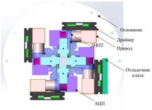 Results. At the first (design) stage, a draft design of a smart drive was synthesized, which allows simultaneously, in real time, to realize the movement of cables with control of the current tension. The resulting architecture was transformed into an image of a digital circuit (a digital twin of the drive) and loaded into the internal flash memory of the FPGA, which allows implementing the required control algorithms with synchronous control of the required parameters of all four actuators of the drive of this link of the manipulator.
